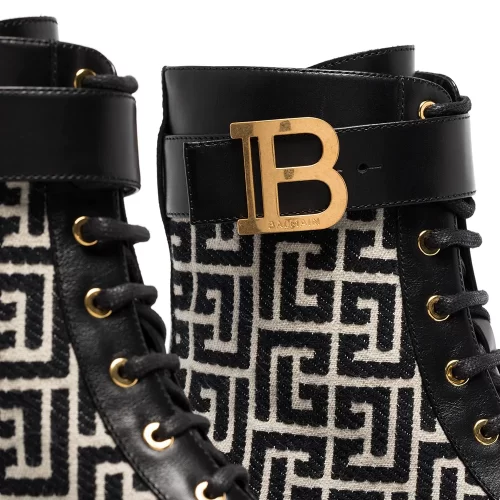 Balmain B-ARMY CANVAS AND LEATHER BUCKET BAG