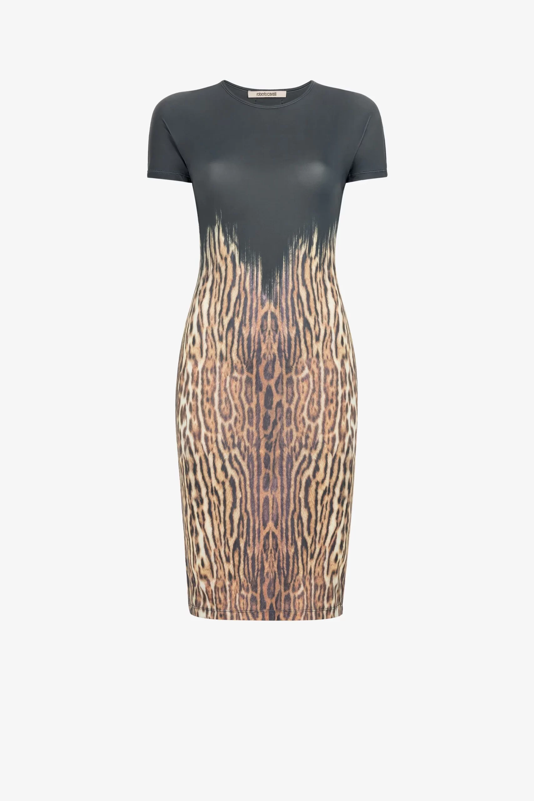 Roberto Cavalli Robe à tête de panthère et imprimé python