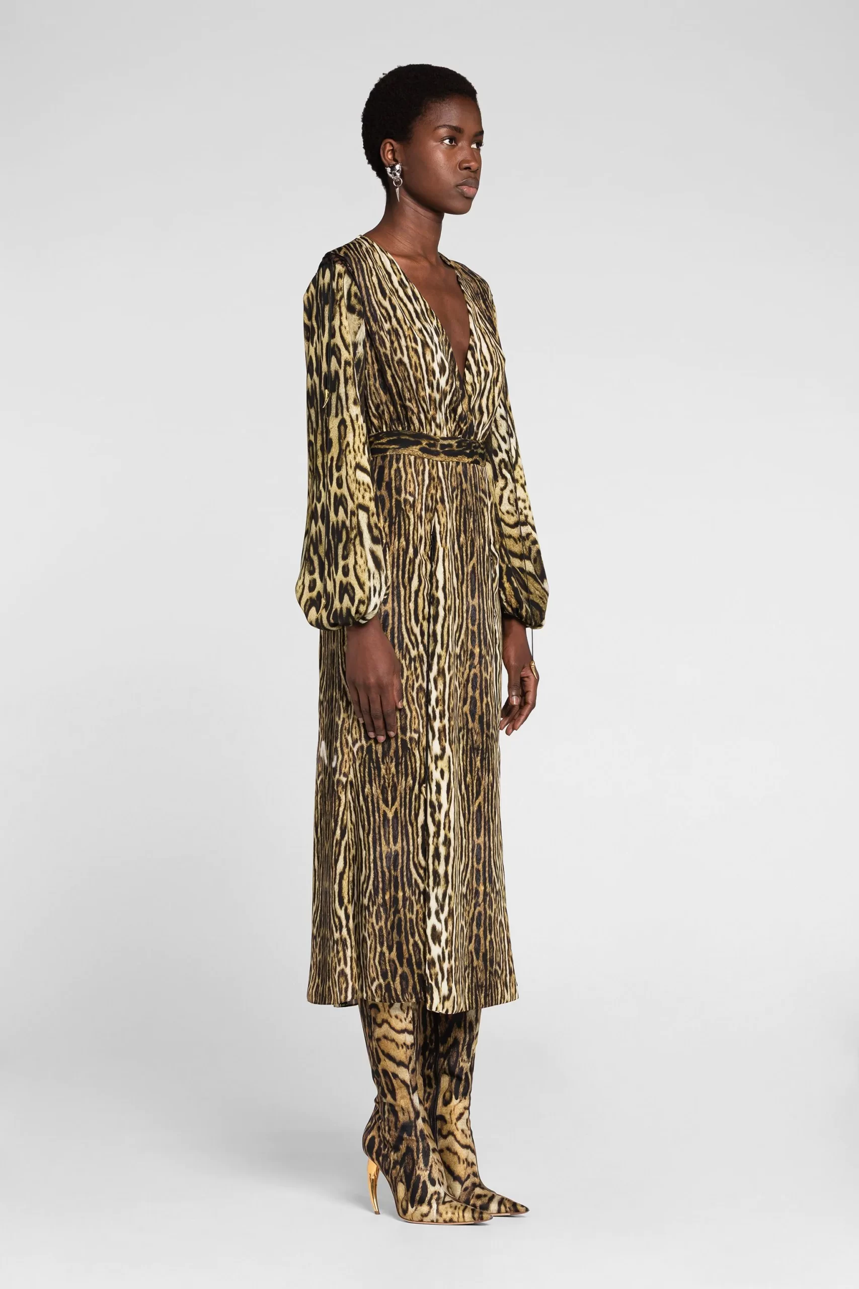 Roberto Cavalli Python-Print Long-Sleeved Knee-Length Dress