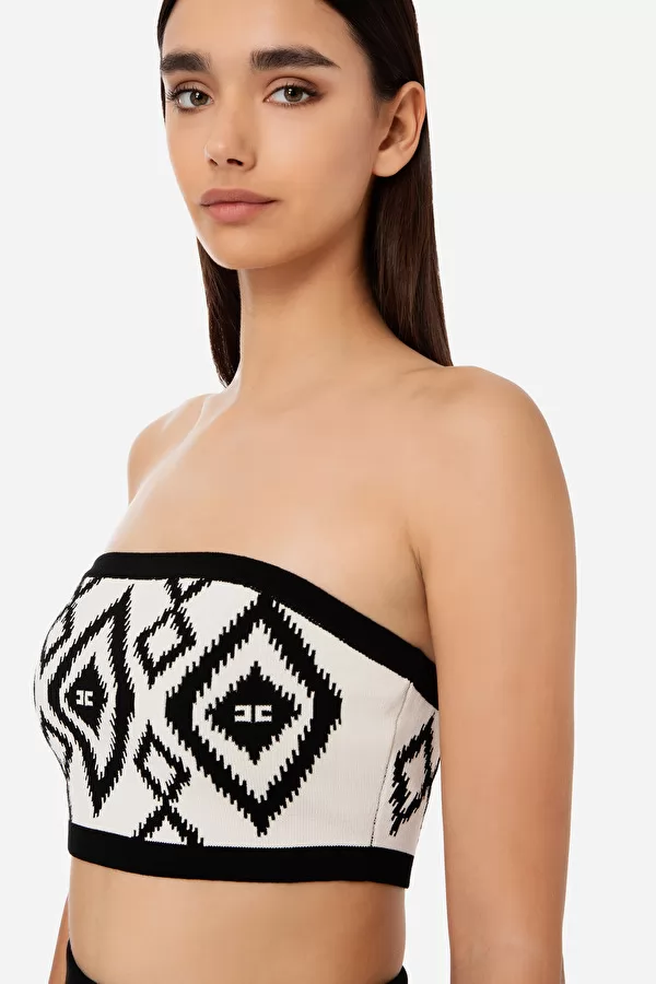 Top bandeau avec graphique jacquard losange ethnique à logo all-over.
