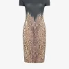 Les imprimés audacieux sont l’un des thèmes réccurents de Roberto Cavalli et cette robe en présente deux : un pelage d’ocelot sur l’avant et des carreaux écossais avec un effet d’aquarelle au dos. La coupe droite est accentuée par l’encolure bateau et la longueur des manches.